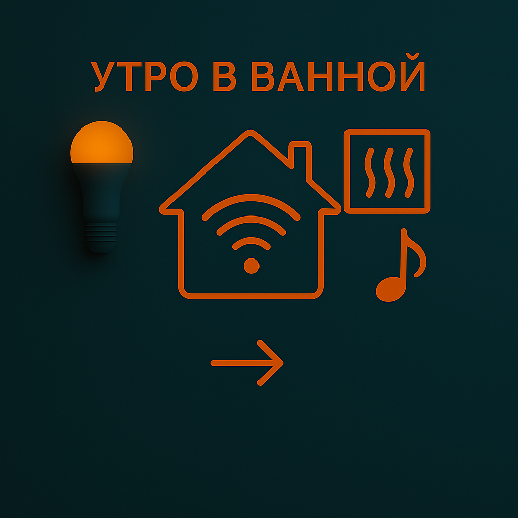 Включается тёплый свет, подогревается пол, играет музыка. Дом заботится о вас с первых минут дня.